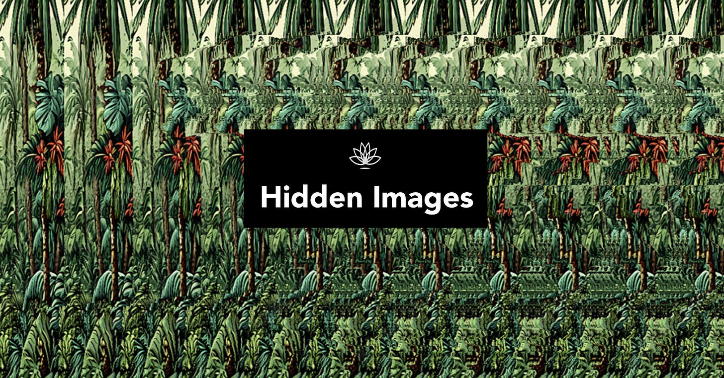 A favorite pastime in my youth was decoding stereograms. Those mesmerizing patterns that looked like visual static until you learned the trick. You’d stare and stare, searching a seemingly ordinary landscape until suddenly, there it was. T-Rex emerging from the foliage as if it had been obvious all along.